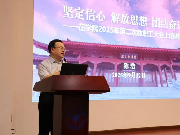党委书记陈浩作了题为“坚定信心,解放思想,团结奋进”的讲话。他传达了学校暑期工作会议精神,指出此次会议进一步明晰了重温总书记嘱托、坚定走向世界一流大学前列的重大任务。他阐述了学院凝聚改革攻坚思想共识的关键问题,提出了锻造激流勇进奋斗集体的思路和举措,激励全体教职工为实现能源学科战略目标贡献力量。