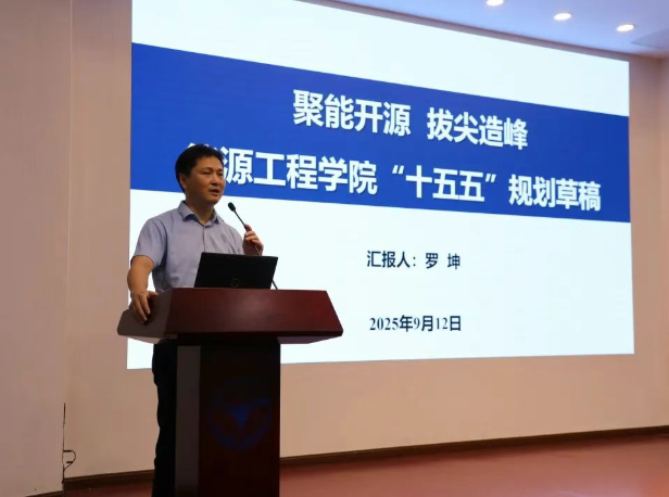 院长罗坤就能源工程学院“十五五”规划草案作了题为“聚能开源,拔尖造峰”的报告。介绍了学院“十五五”发展规划的编制情况。规划锚定建设世界顶尖能源学科的战略目标,实施“FIRST”发展战略,围绕九大总体布局展开,旨在推动学院在立德树人、学科建设、科学研究、社会服务、国际合作等方面实现高质量发展。